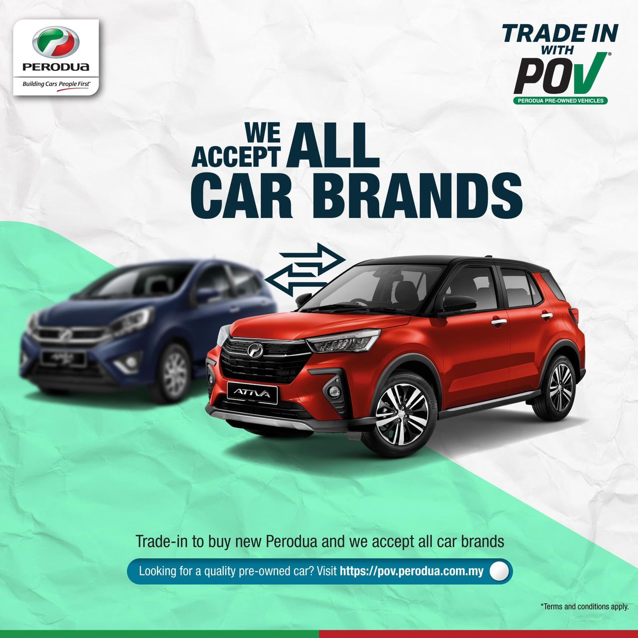 At POV, we accept all car brands and conditions for trading in, allowing you to upgrade to a new Perodua at a competitive price!